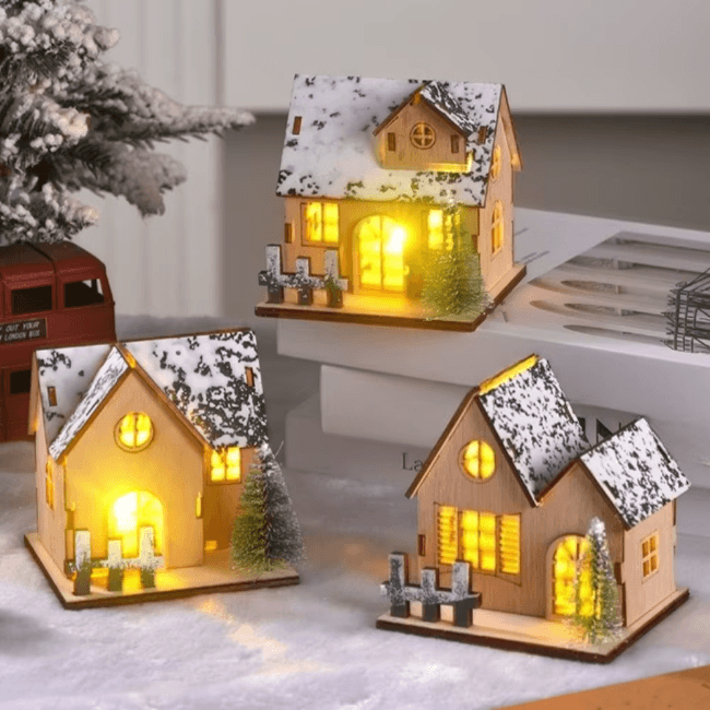 A decorative wooden cabin house adds the sweetest rustic touch to winter décor, evoking the charm of snowy mountain lodges and cozy winter getaways. Whether lit from within, dusted with faux snow, or decorated with miniature holiday details, these pieces bring warmth and nostalgia to shelves, tabletops, and mantels. It’s a small accent that creates big seasonal impact.